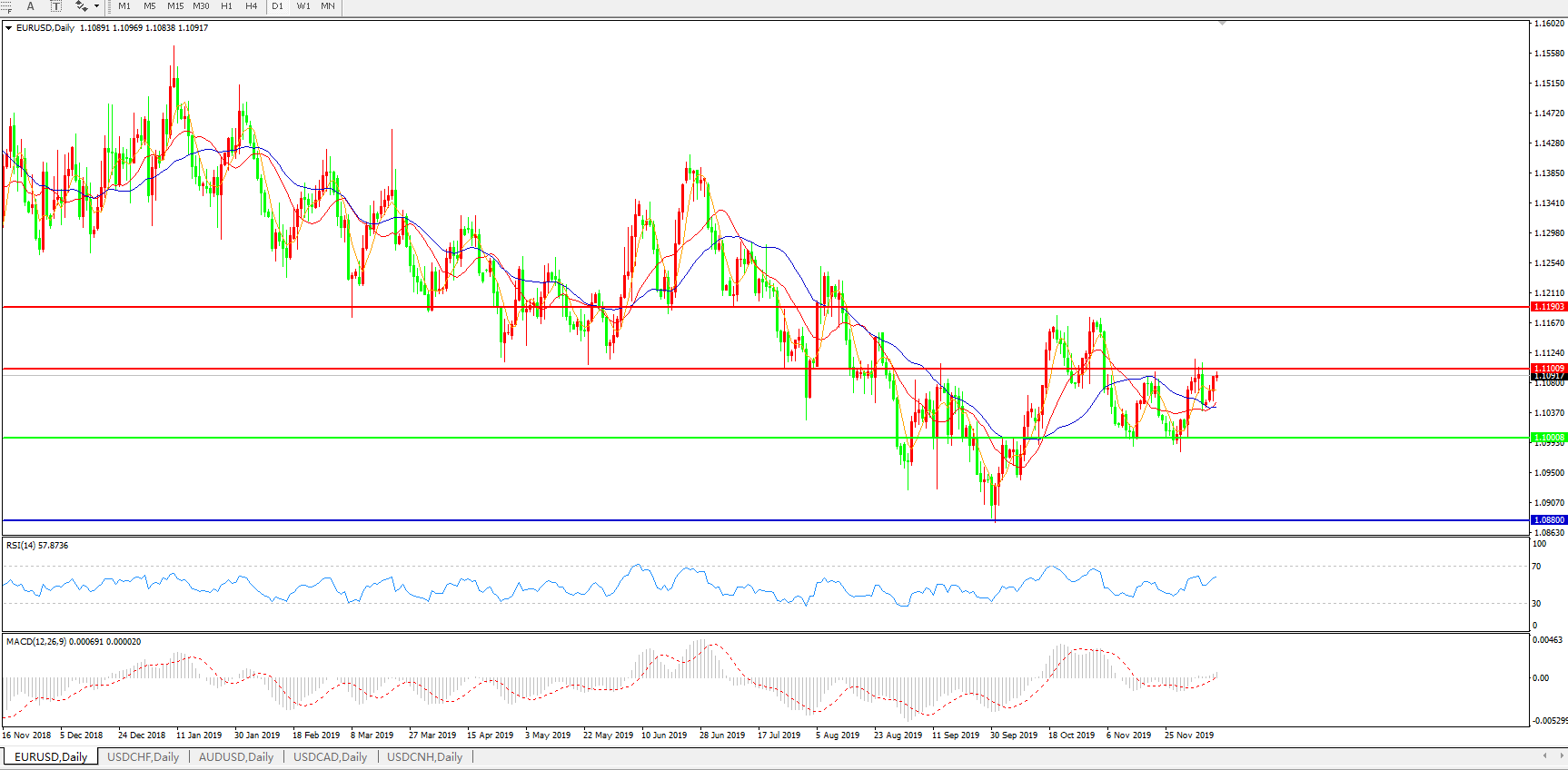 交易策略:1.1000上方看涨,目标1.1100、1.1190