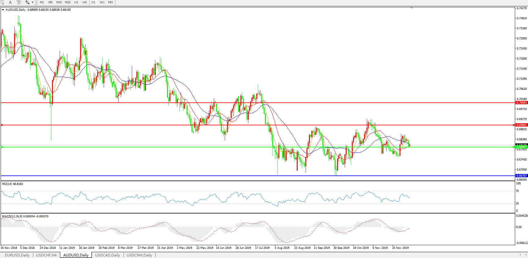 交易策略:0.6800上方看涨,目标0.6900、0.7000