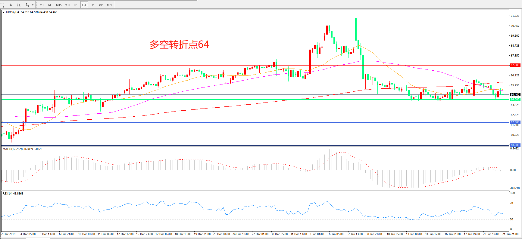 周二(1月21日)因市场预期包括美国增加的产量能够抵消利比亚原油生产中断的影响,布油波幅不大,窄幅震荡后收报64.46美元/桶。此外石油输出国组织(OPEC)周二在最新发布的统计报告中强调,与2018年相比,2019年该组织的原油产量下降了6.3%,降幅约200万桶/日,利好油价。