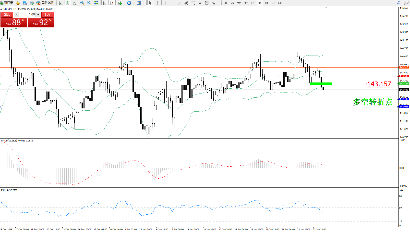 交易策略:143.157下方看跌,目标142.448142.099