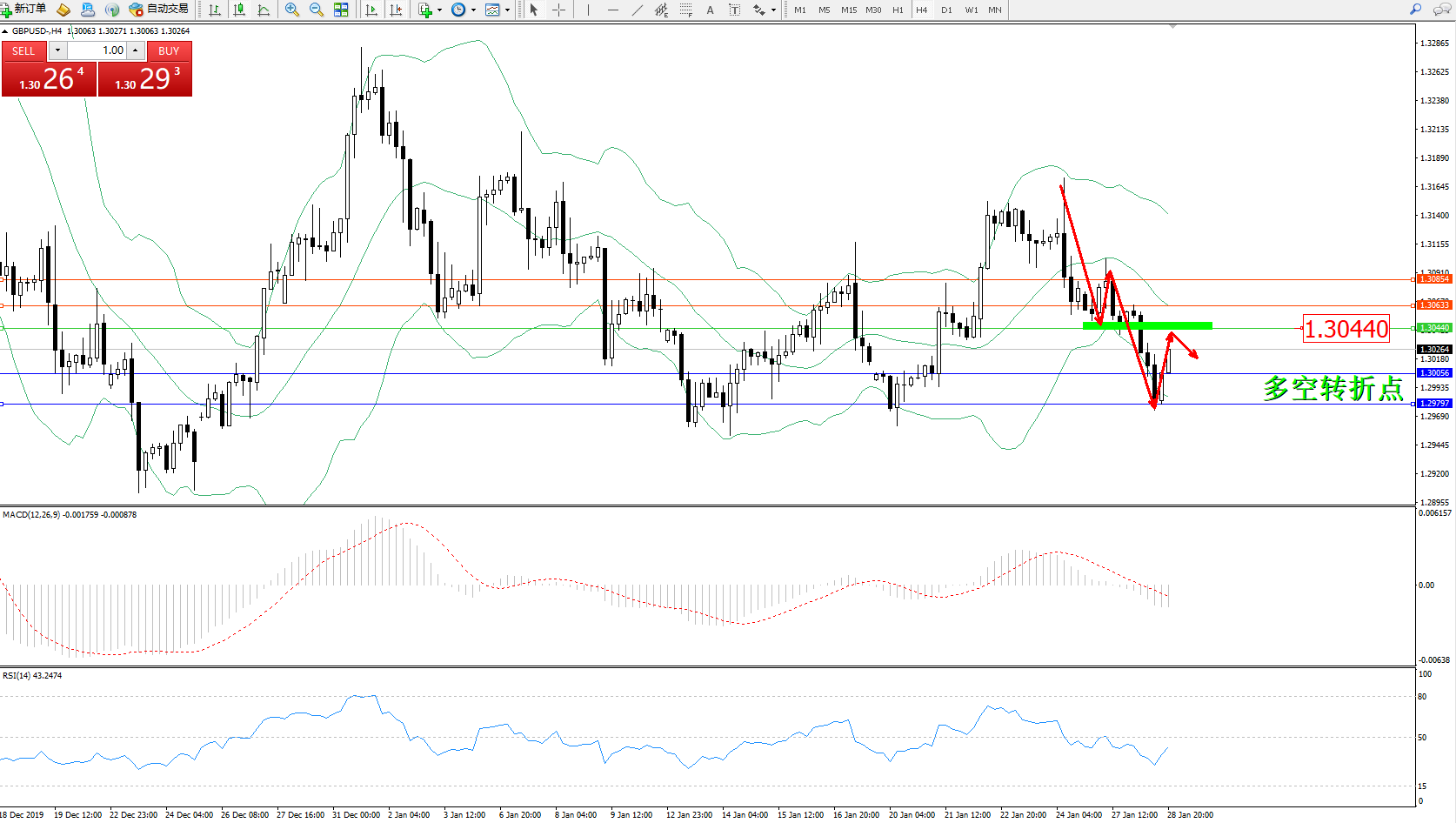交易策略:1.30440下方看跌,目标1.300561.29797