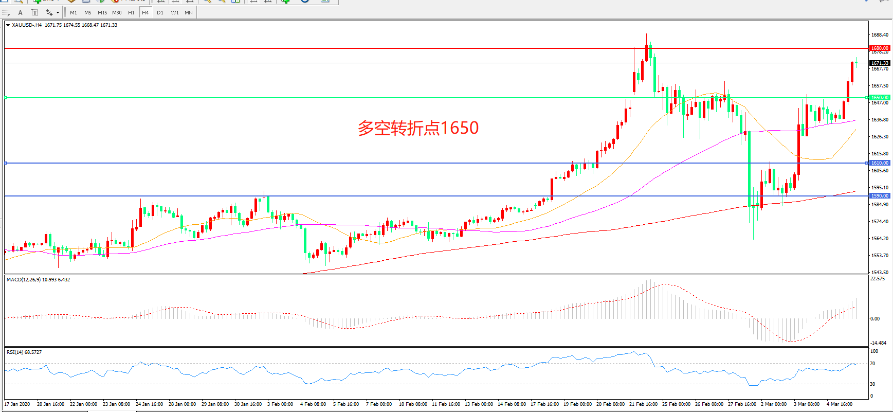 多空转折点:1650.00