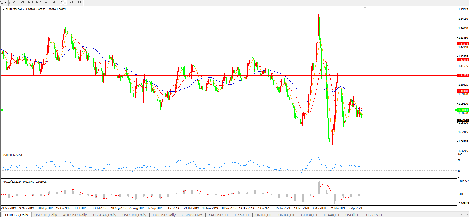欧元兑美元EURUSD 日线图: