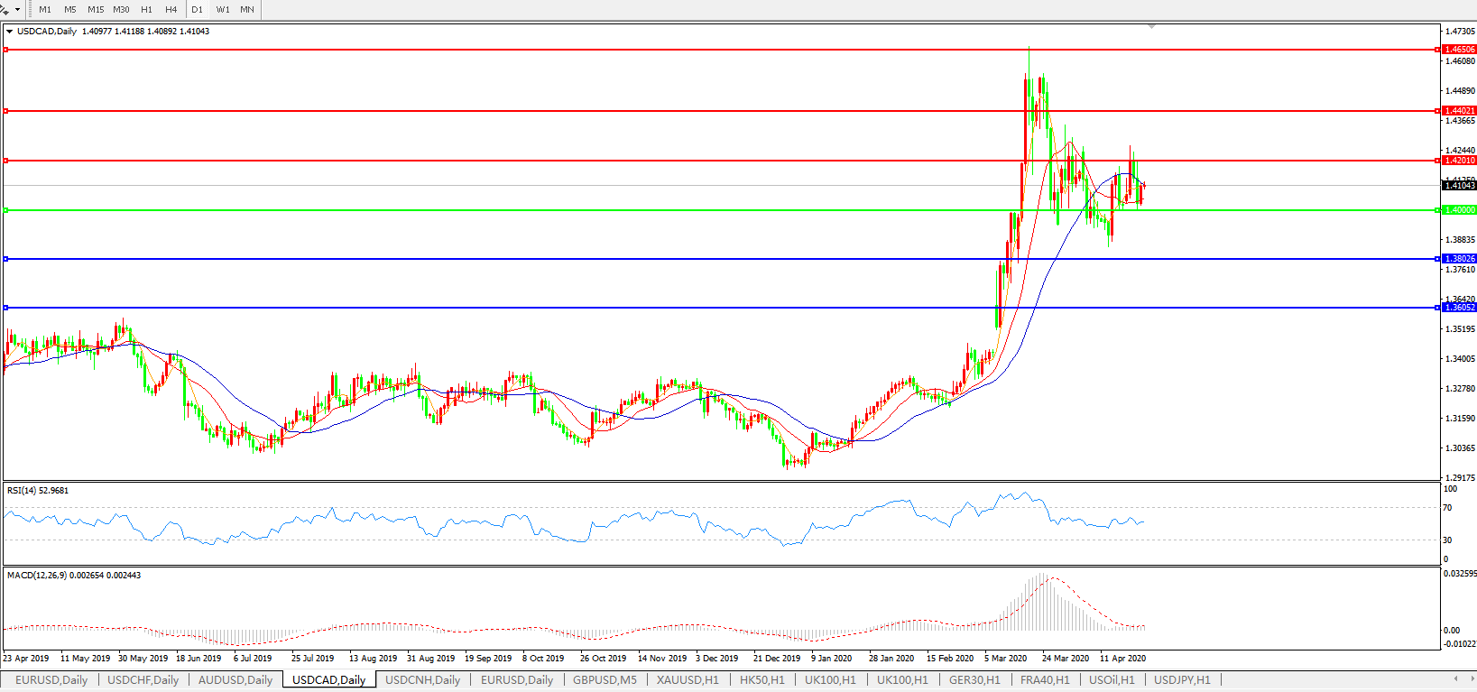美元兑加元USDCAD    日线图: