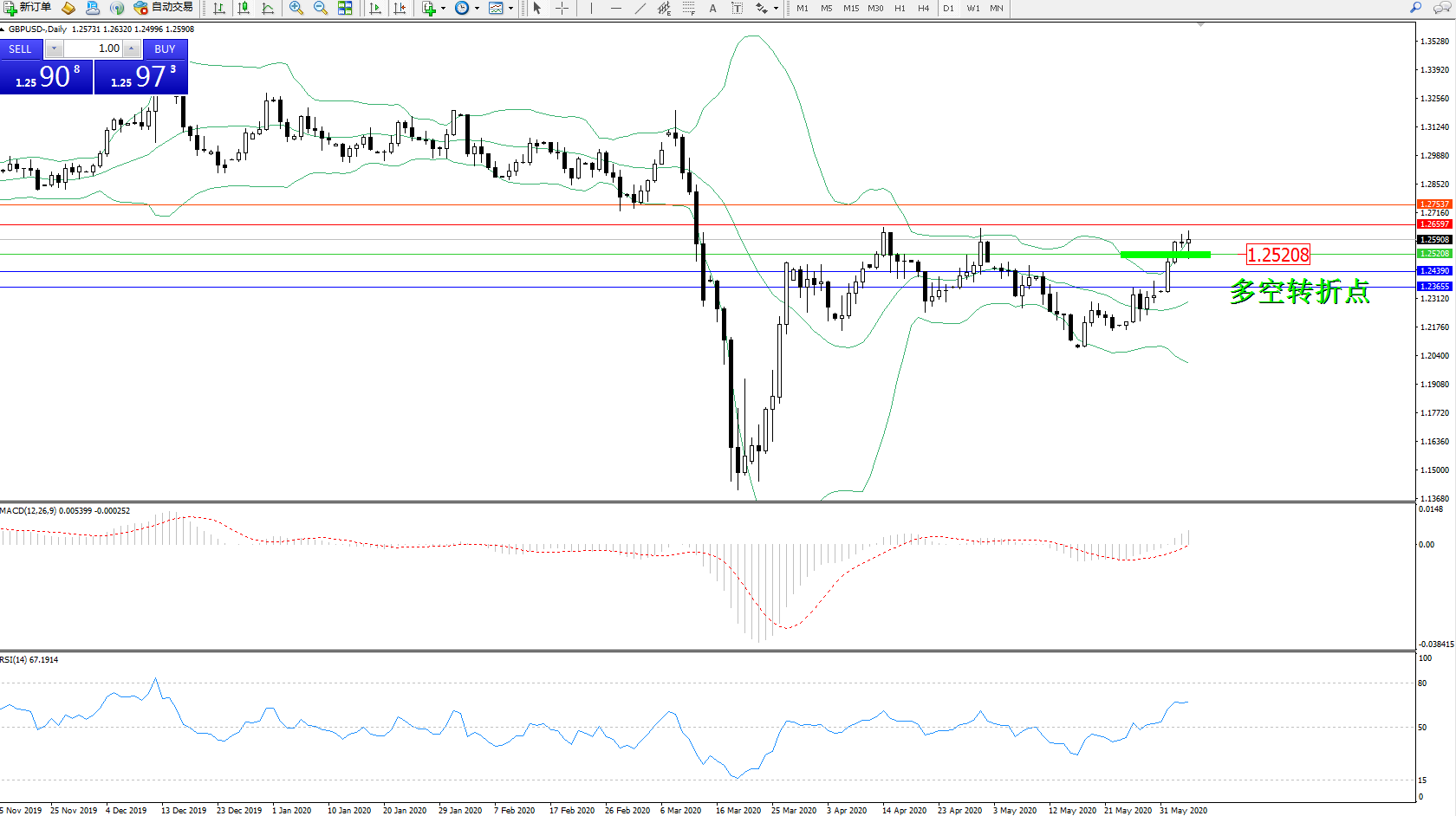 交易策略:1.25208上方看涨,目标1.265971.27537