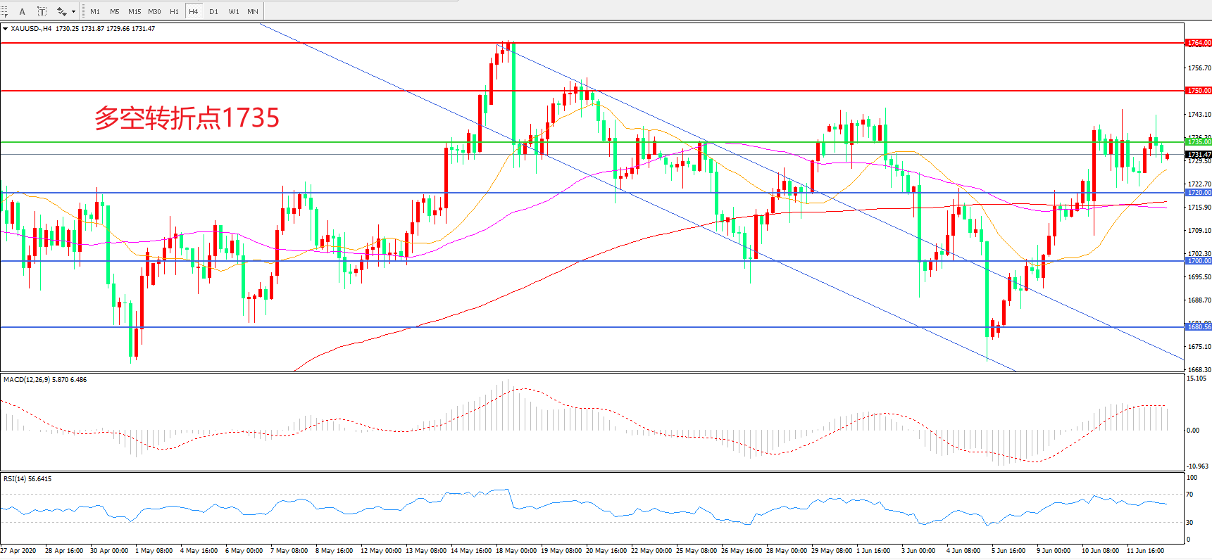 交易策略:在1735.00之上看涨,目标1750.00   1764.00