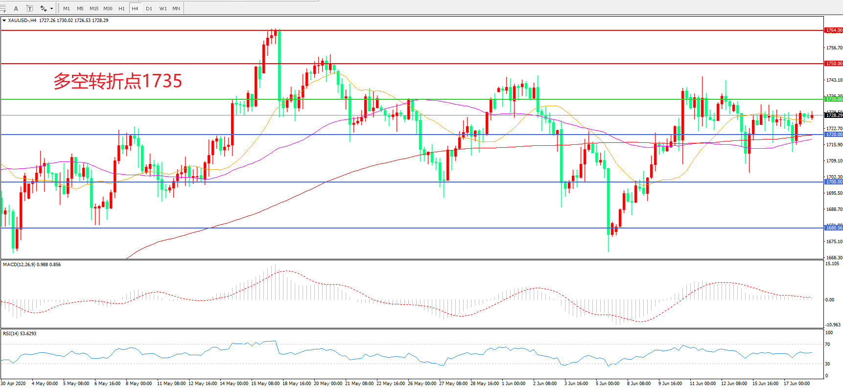交易策略:在1735.00之下看跌,目标1720.00   1700.00