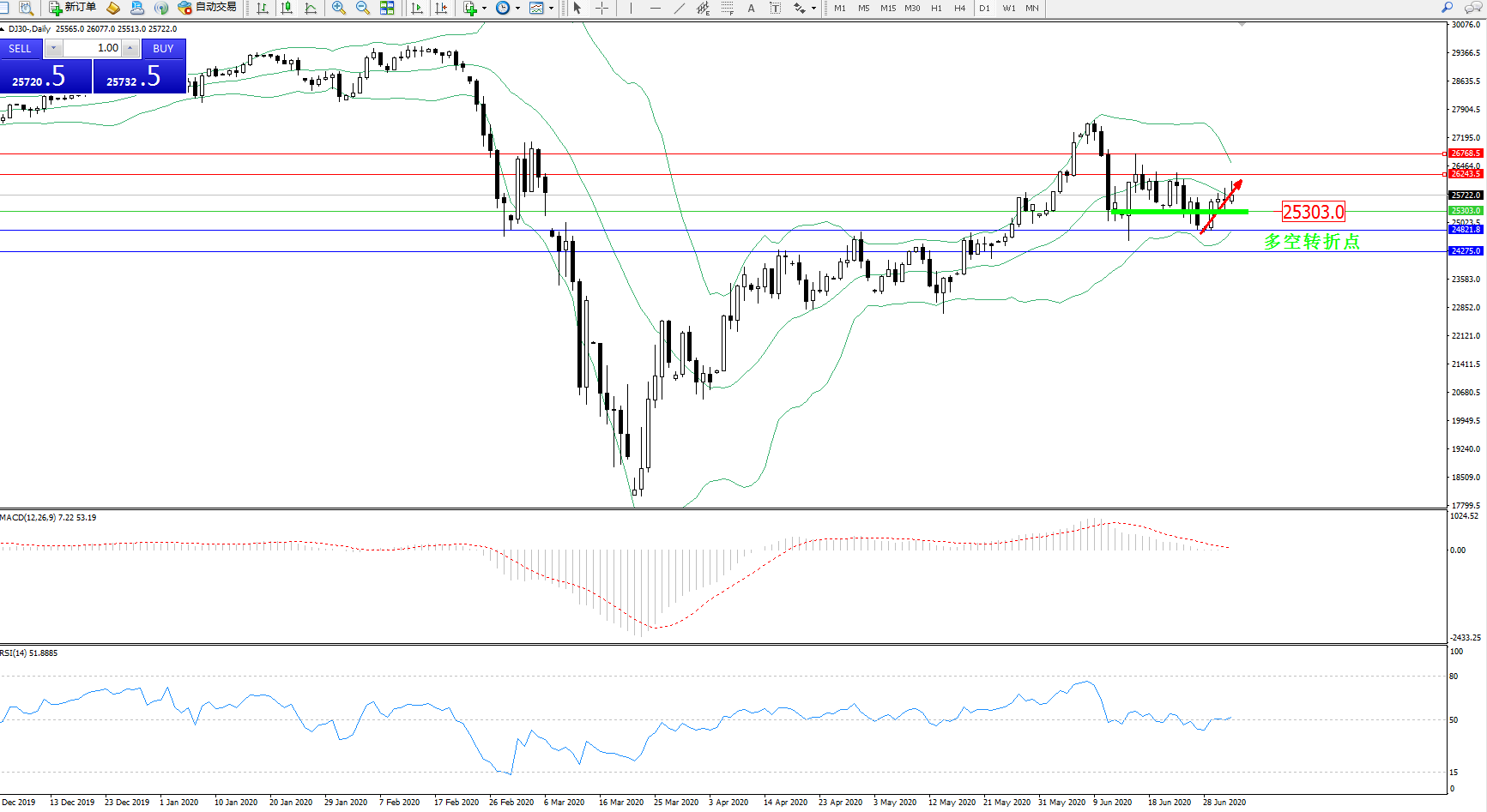 道琼斯指数7月2日(周四)收盘上涨92.40点,涨幅0.36%,报25827.36点。美国股市缩小涨幅,投资者担忧第二波新冠疫情可能阻碍经济从纪录最大萎缩中复苏。美国6月就业人数增加480万,超过预期,5月数据也上修至270万;不过,居高不下的裁员人数以及疫情反弹令就业复苏前景蒙阴。虽然6月非农数据远超预期,但近期美国疫情升温后对经济的影响还未被计入。受美国经济从疫情中复苏的迹象鼓舞,油价在美国假期前夕收于近四个月以来高位,不过对疫情加重的担忧情绪挥之不去。对于复苏速度普遍仍持乐观看法,但是市场认为复苏势头将停滞,尤其是当继续看到新冠病例增长居高不下。
