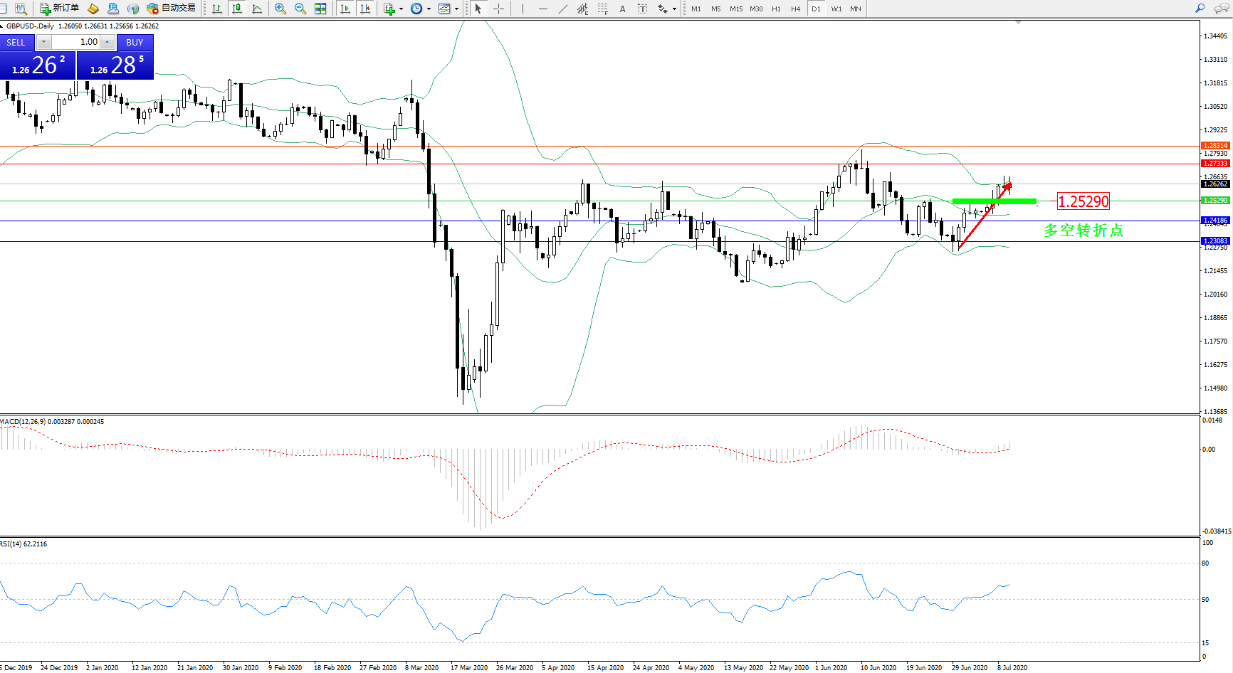 交易策略:1.25290上方看涨,目标1.273331.28314