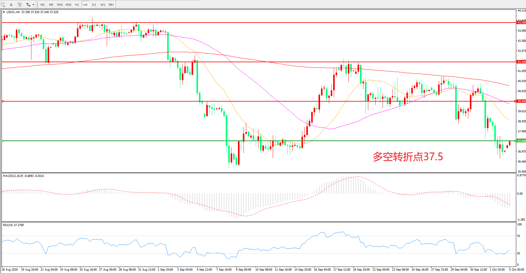多空转折点:37.50