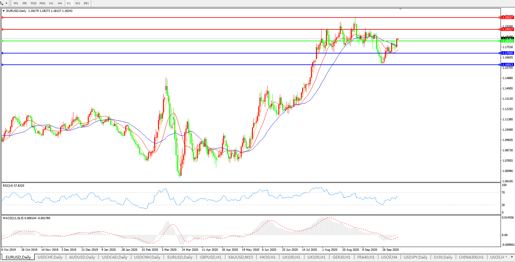 交易策略:1.1800上方看涨,目标1.1900、1.2000