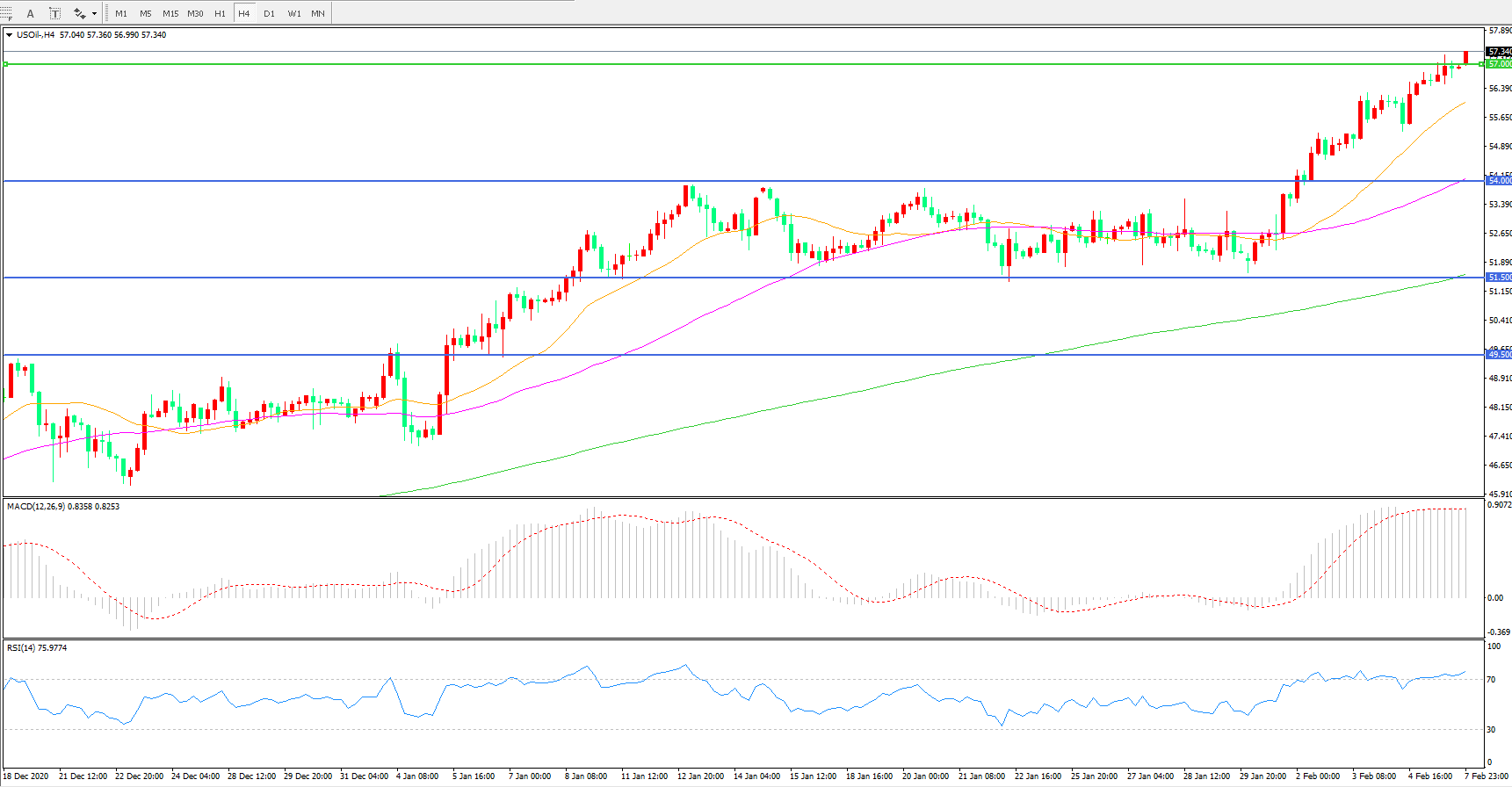 交易策略:在57.00之上看涨,目标60.00 63.00