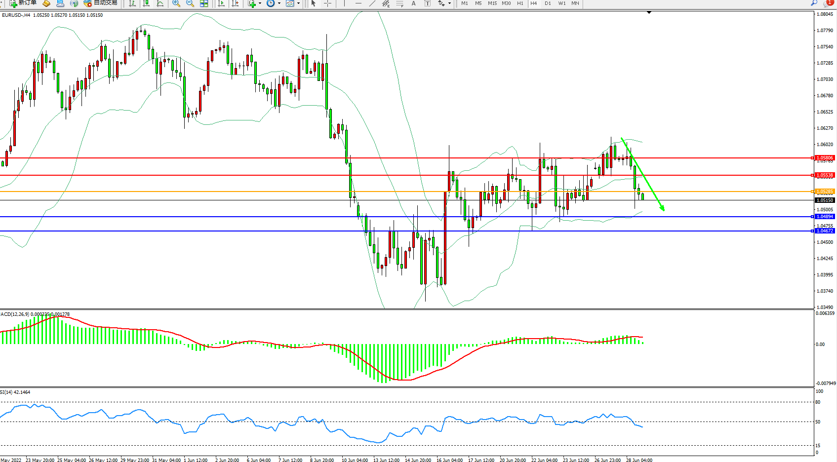 交易策略:1.05285下方看跌,目标1.04894、1.04672