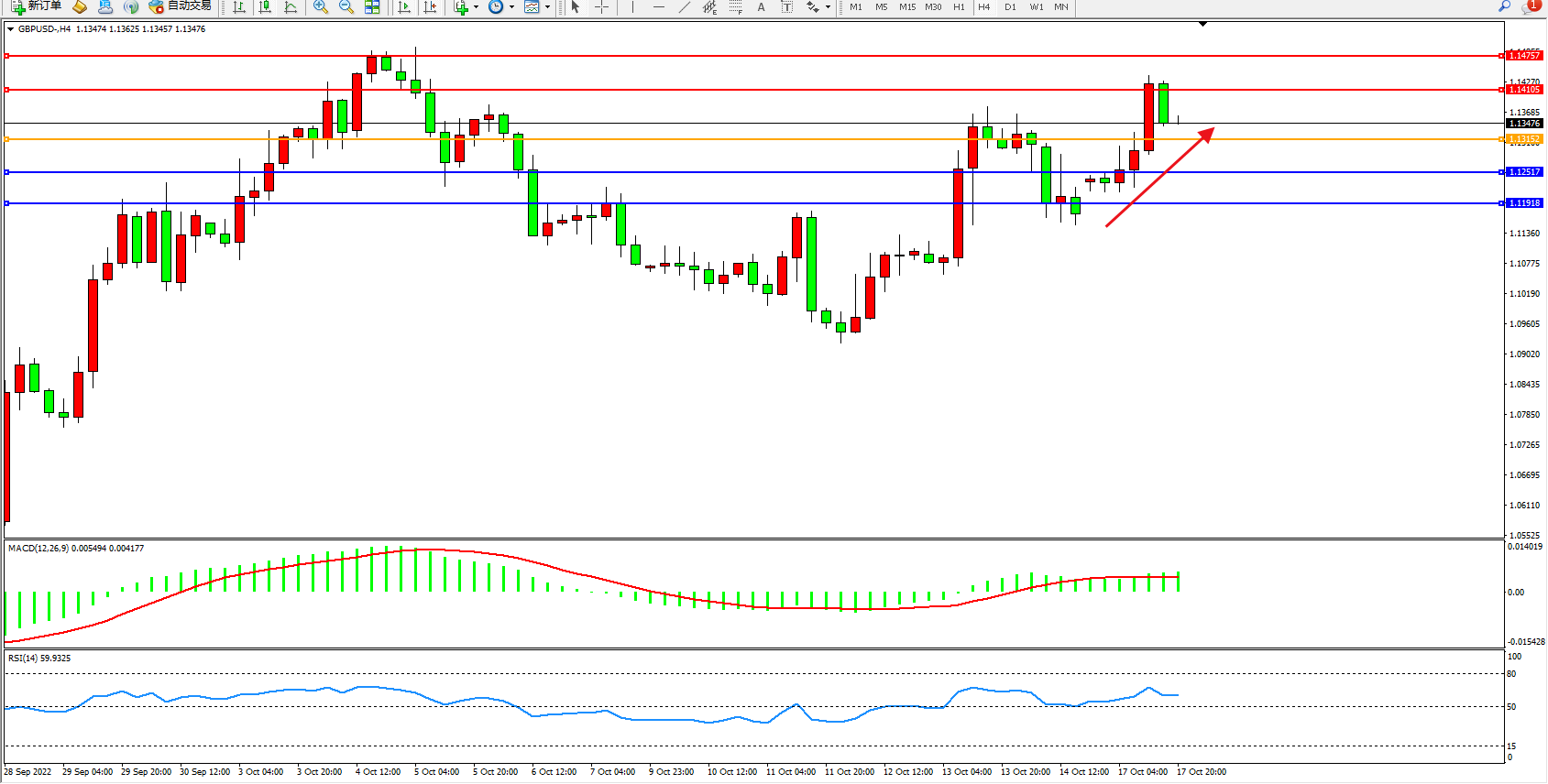 英镑美元GBPUSD ——4小时K线图显示: