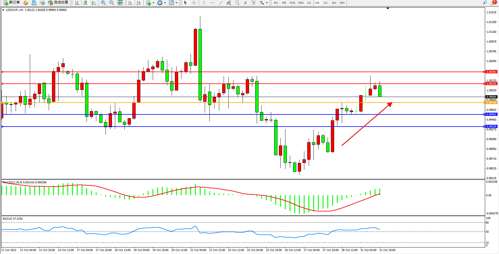 美瑞:多头上扬 USDCHF  XAUUSD