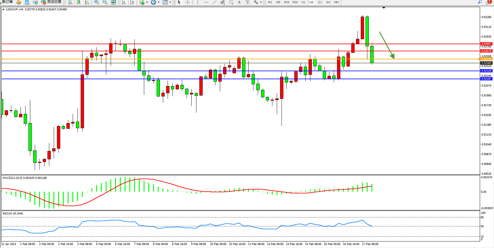 美元瑞郎USDCHF——4小时K线图显示: