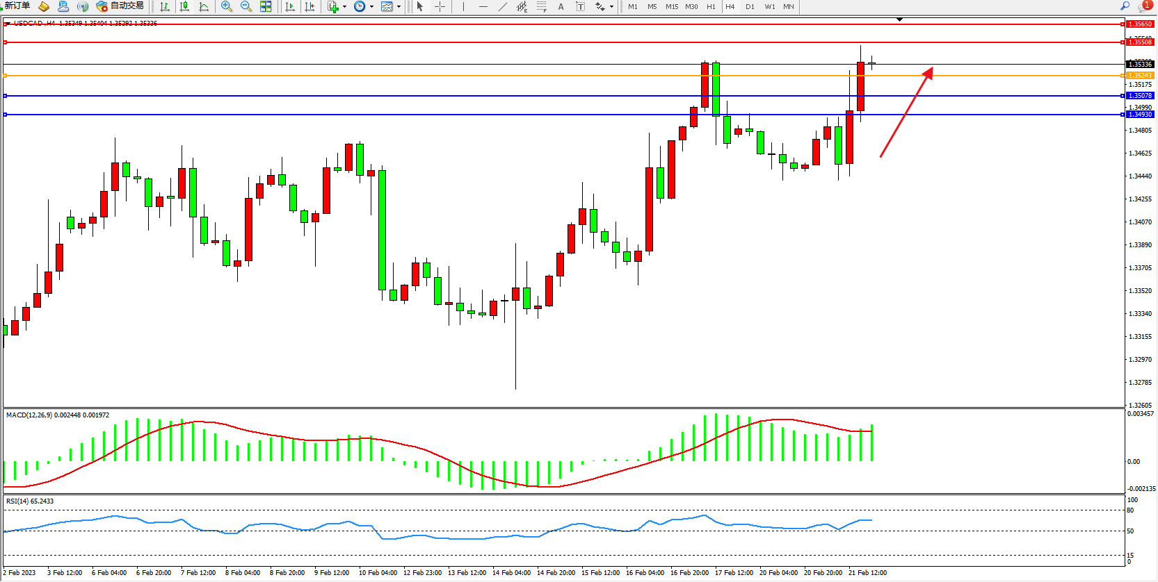 美元加元USDCAD——4小时K线图显示: