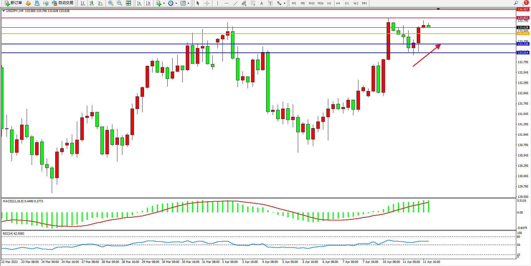阻力位:133.853  134.057