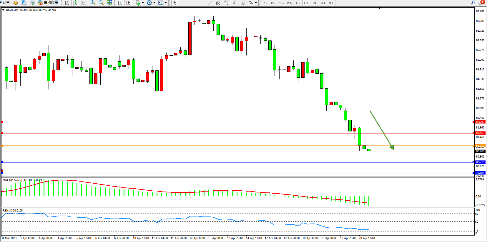 布油UKOil——4小时K线图显示: