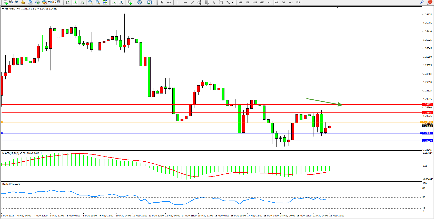 交易策略:1.24440下方看跌,目标1.24201 1.24030