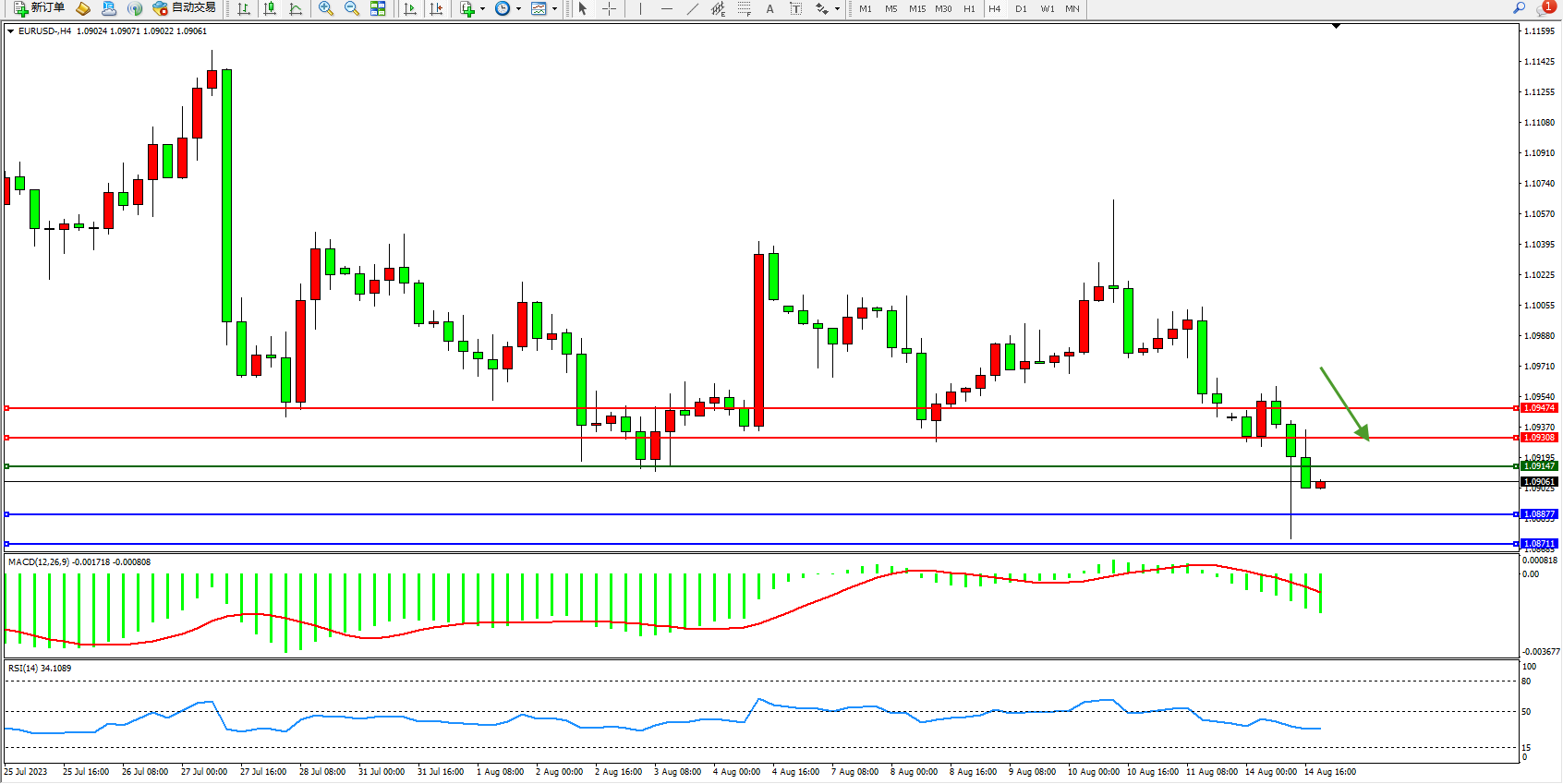交易策略:1.09147下方看跌,目标1.08877 1.08711