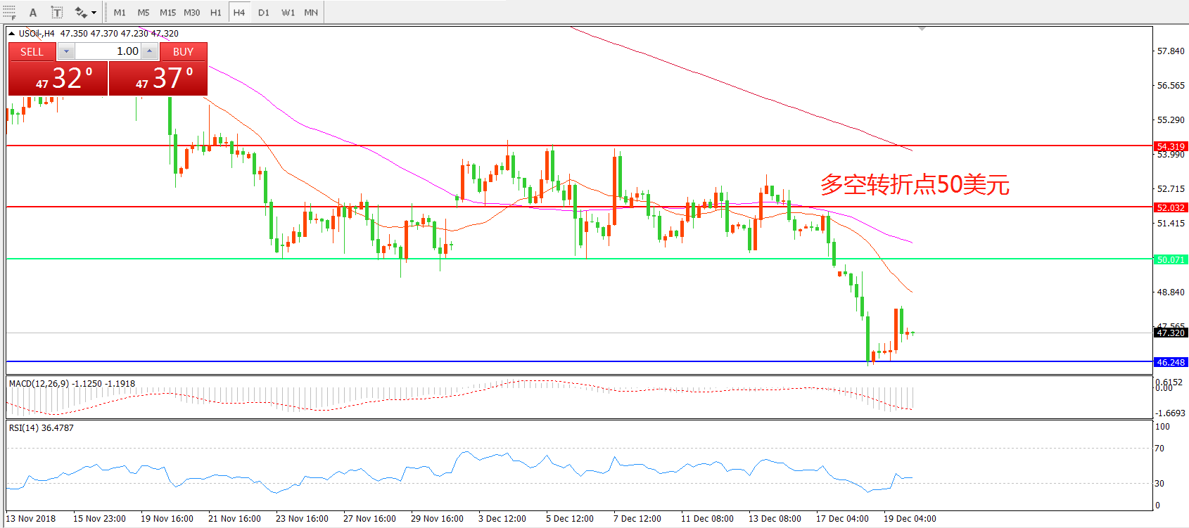 交易策略:在50.00之下看跌,目标46.00   42.00