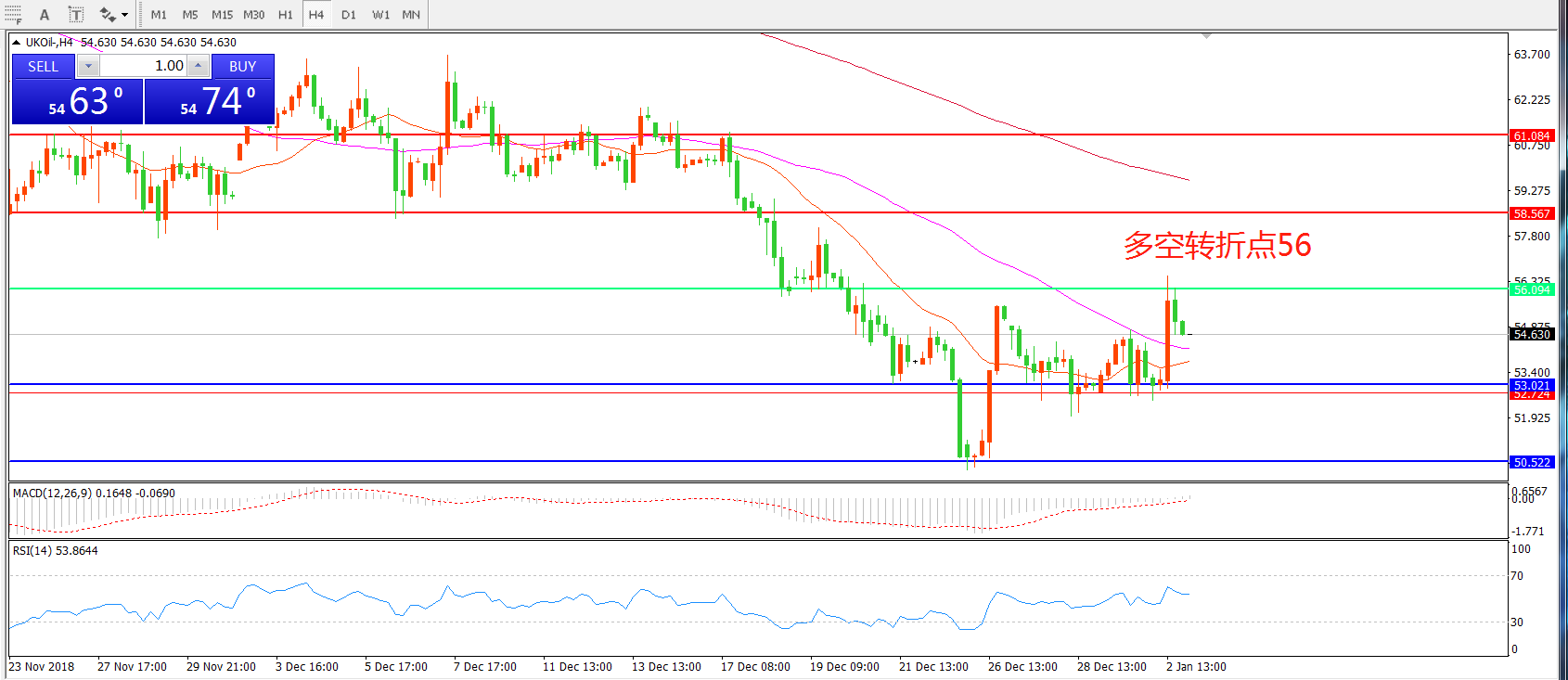 交易策略:在56.00之下看跌,目标53.00 50.00