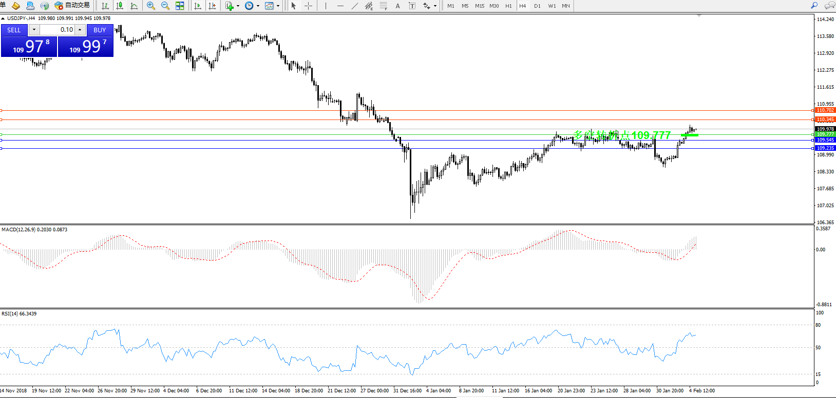 交易策略:109.777上方看涨,目标110.345110.702
