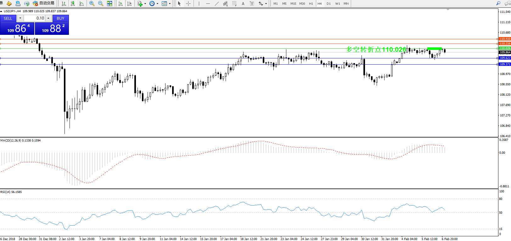 多空转折点:110.026