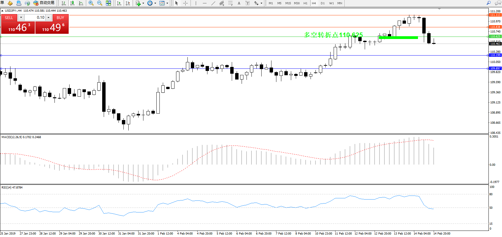 交易策略:110.625下方看跌,目标110.199109.897