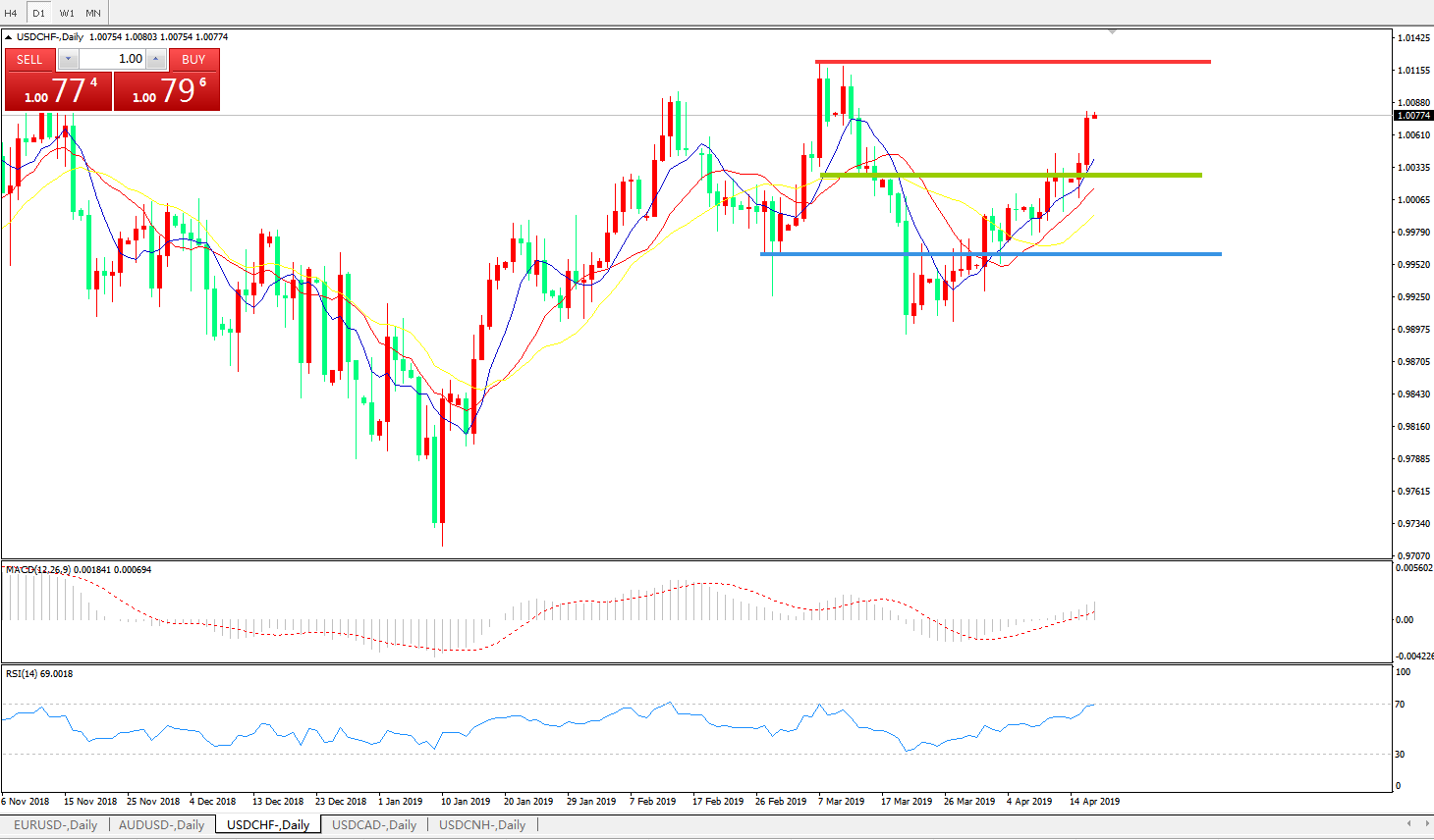 美元兑瑞郎USDCHF 日线图: