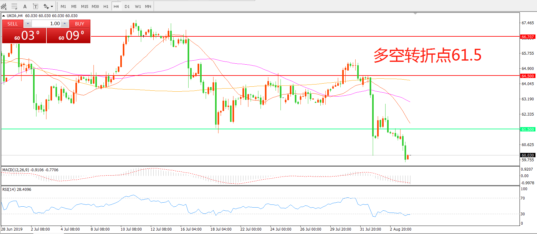 多空转折点:61.50