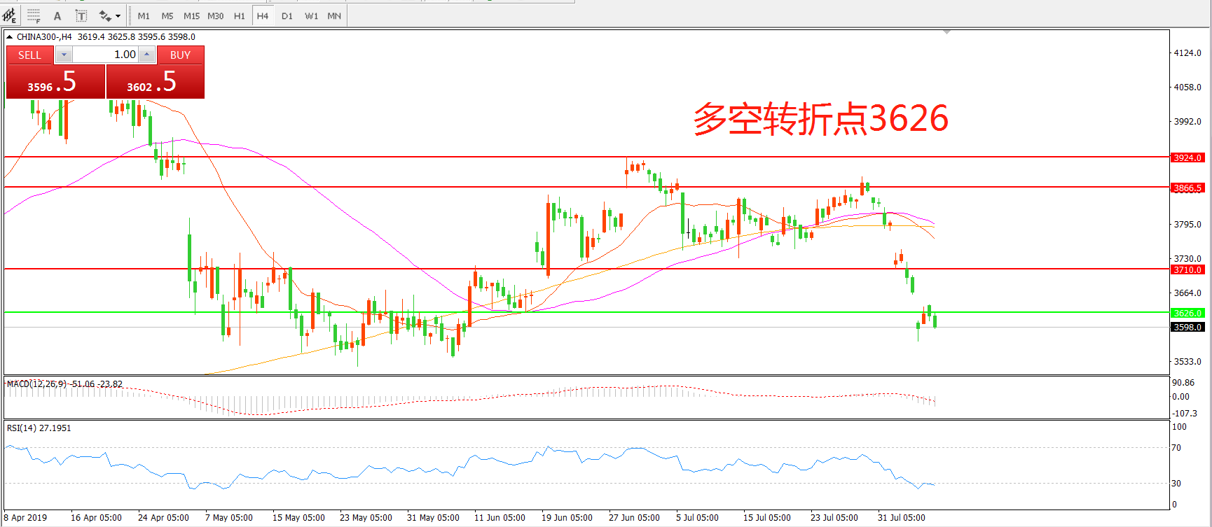 多空转折点:3626.00