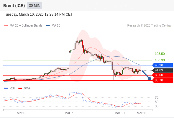 交易策略: 在 96.20 之下,看跌,目标价位为 88.00 ,然后为 83.70 。