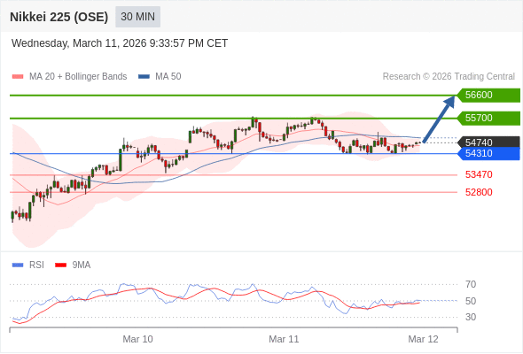 交易策略: 在 54310 之上,看涨,目标价位为 55700 ,然后为 56600 。