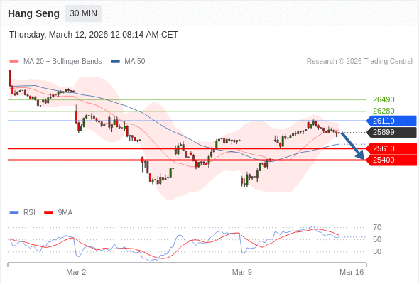 在 26110 之下,看跌,目标价位为 25610 ,然后为 25400 。