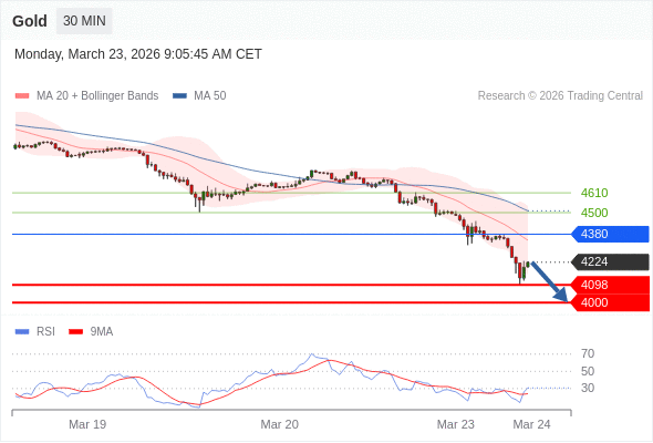 在 4380 之下,看跌,目标价位为 4098 ,然后为 4000 。
