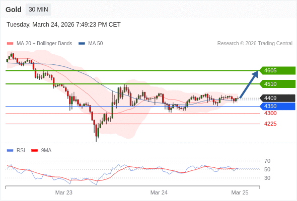 在 4350 之上,看涨,目标价位为 4510 ,然后为 4605 。
