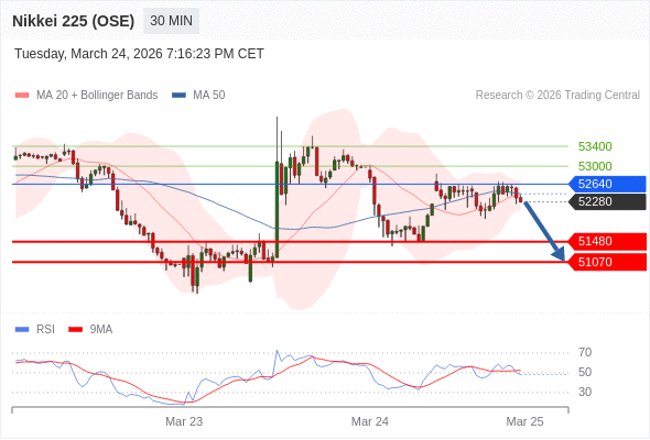 日经225股指期货 (OSE) 当日内: 短期关键阻力位在52640。