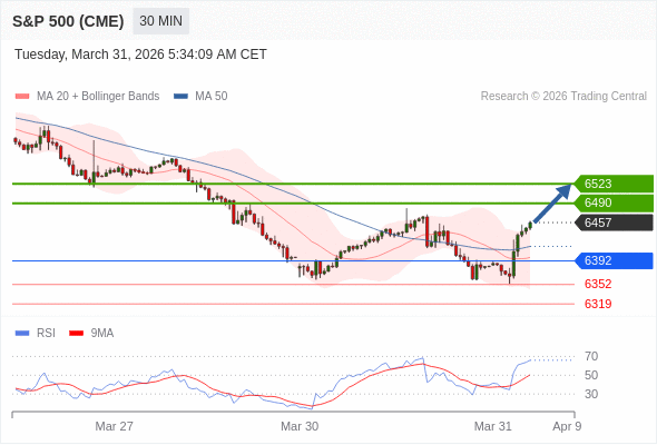 在 6392 之上,看涨,目标价位为 6490 ,然后为 6523 。