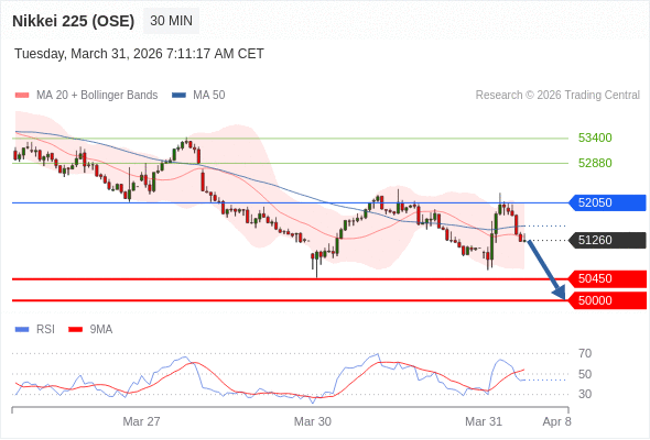 在 52050 之下,看跌,目标价位为 50450 ,然后为 50000 。