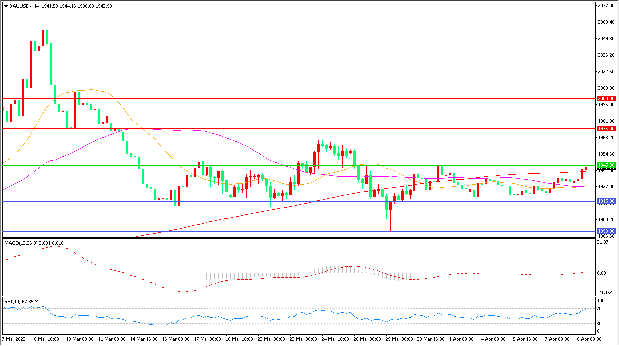 上周,受美联储鹰派表态影响,美元指数突破100大关,但俄乌冲突引发的避险需求仍然支撑金价,多空双方情绪谨慎,金价震荡走高后,收报1943.90美元/盎司。