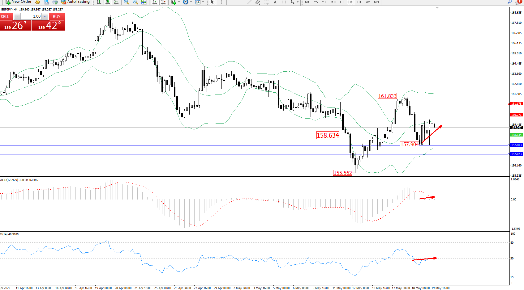 交易策略:158.634上方看涨,目标160.271、161.178