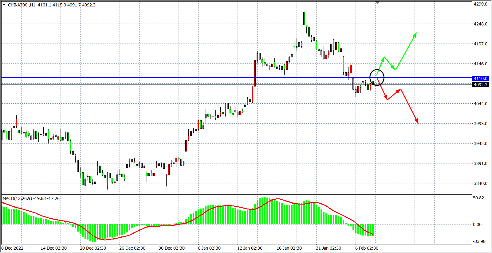 1小时图看,沪深300在高位继续回落,目前延续顶部跌势,当前阻力集中于4110附近,在,该位之下继续看跌为主,下方目标4050-4000附近。
