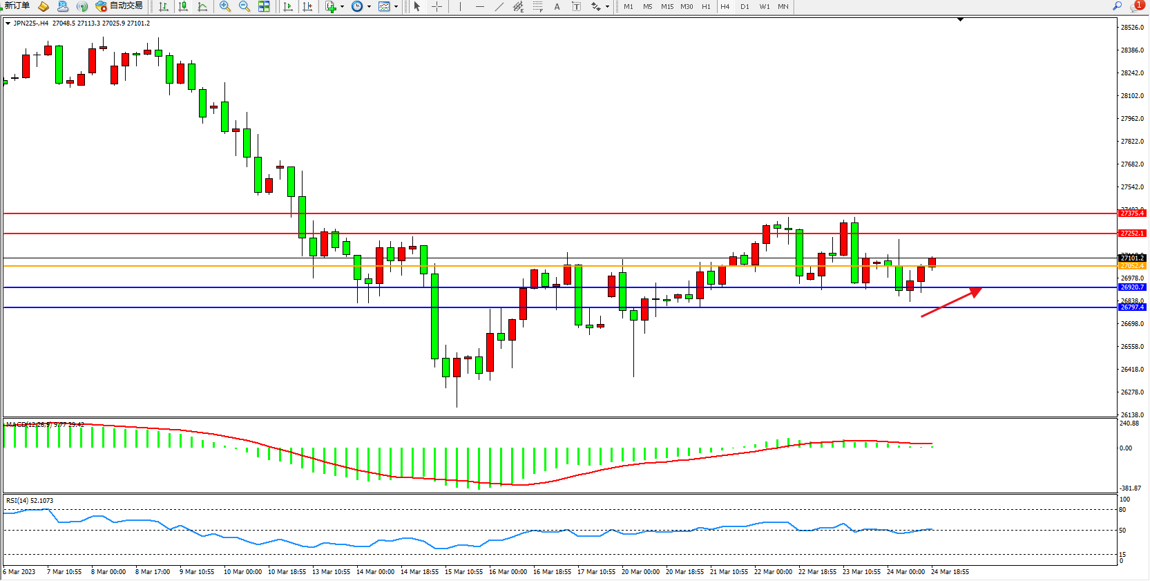 交易策略:27052上方看涨,目标27252 27375
