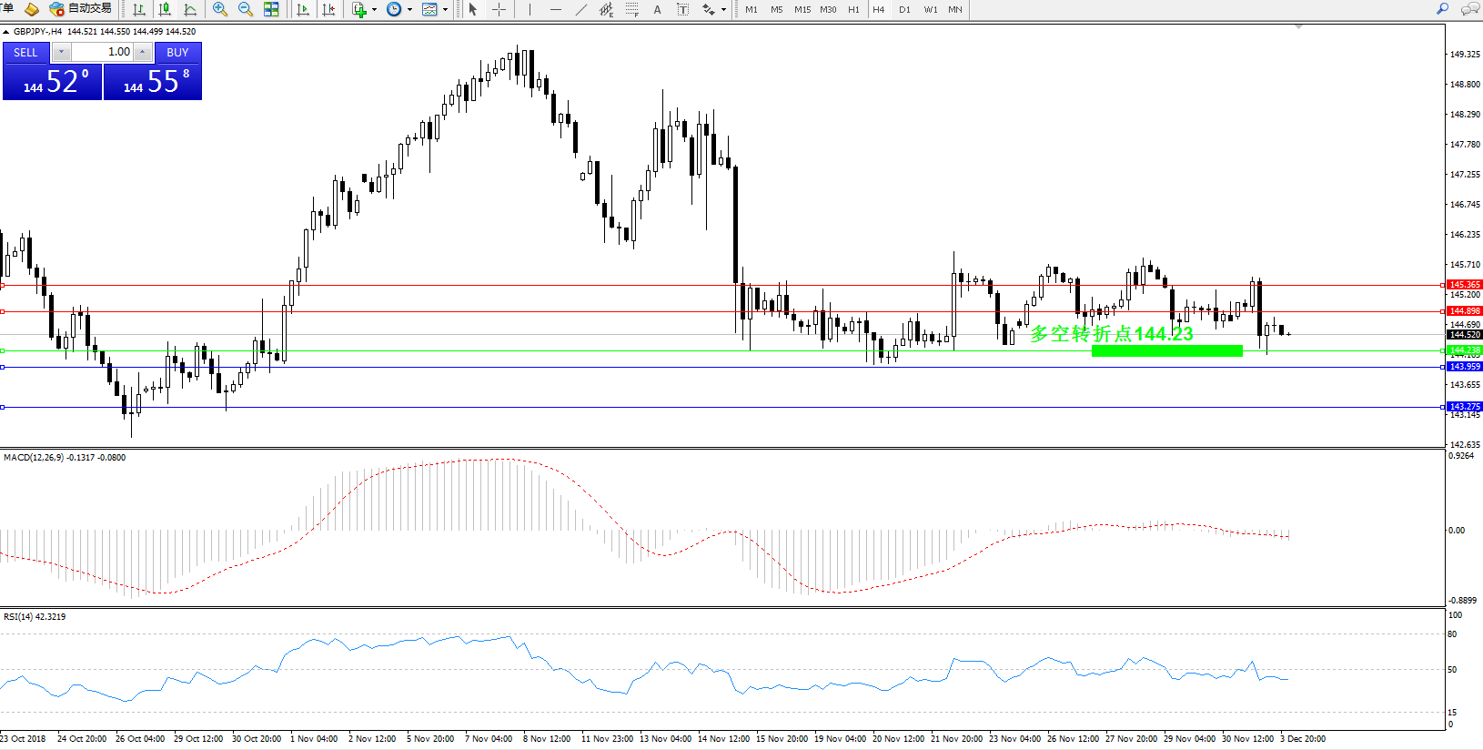 交易策略:144.23上方看涨,目标144.898145.365