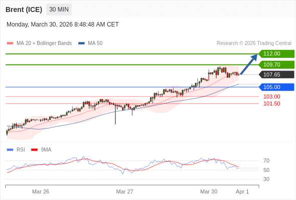 在 105.00 之上,看涨,目标价位为 109.70 ,然后为 112.00 。